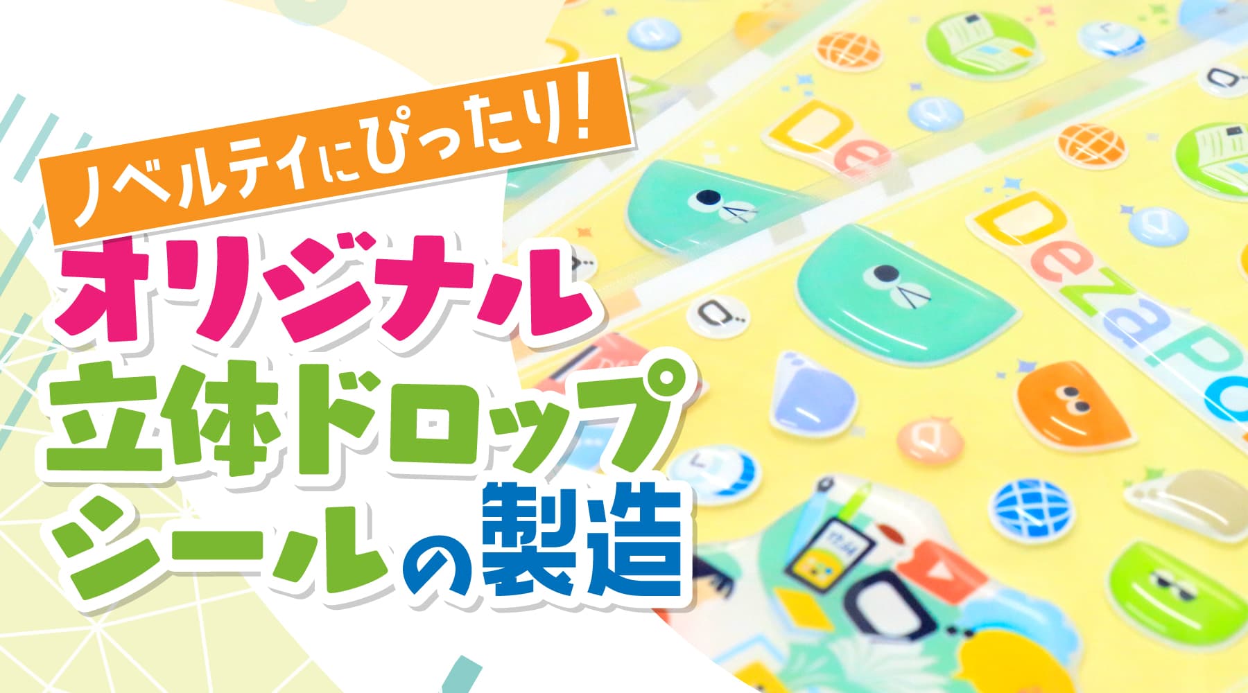 デザポケでは近年Z世代を中心にトレンドとなっている、立体的でつるんとした質感の「ポッティングシール」のオリジナル製造が可能です。